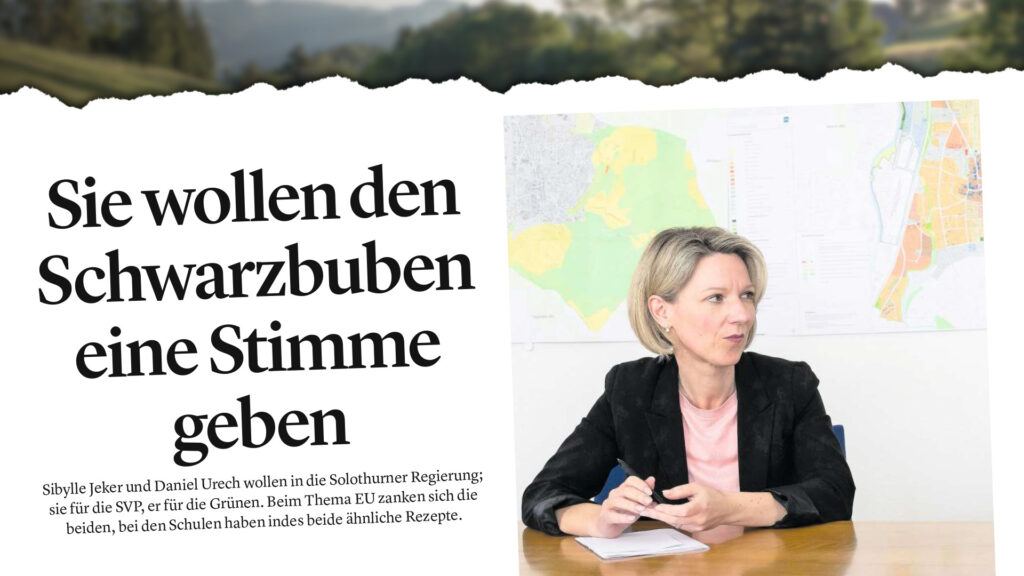 Beide stammen aus dem Schwarzbubenland, gehören seit Jahren dem Kantonsrat an, sind 41 Jahre alt und beide möchten am 9. März in den Solothurner Regierungsrat einziehen. Hier enden jedoch die Gemeinsamkeiten zwischen Sibylle Jeker (SVP) und Daniel Urech (Grüne). Sie ist in Büsserach im eher konservativen Thierstein zuhause und vertritt eine bürgerliche Politik, während er als Dornacher Gemeindepräsident in der mit Abstand urbansten Gemeinde des Dorneck-Thierstein sozialisiert wurde. Knapp zwei Wochen vor der Wahl treffen die beiden ungleichen Schwarzbuben im grossen Interview aufeinander und zeigen sich angriffslustig.